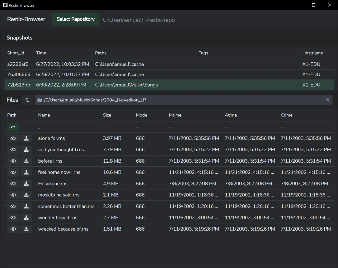 CommunityShowcaseRestic BrowserVersion: v2.11.0Restic Browser Restic-Browser - A simple, cross-platform restic backup GUI for browsing and restoring restic repositories.