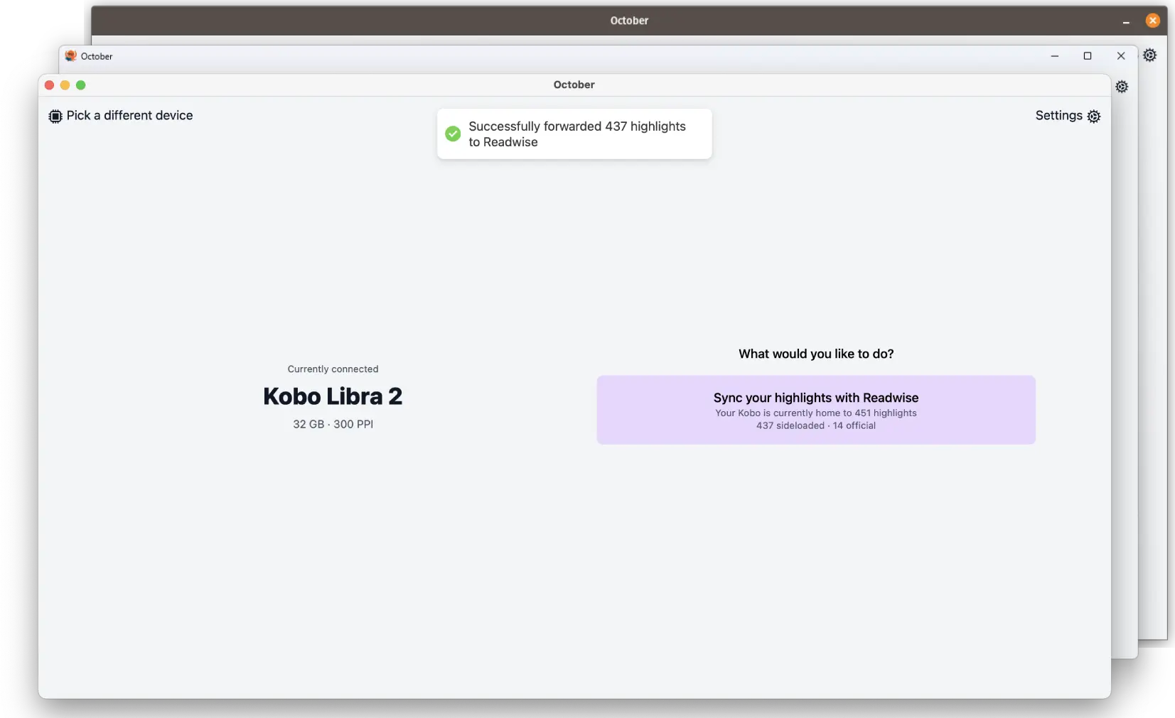 Octobre est une petite application Wails qui rend vraiment facile d'extraire les surlignements de Kobo eReaders puis de les transférer vers Readwise.